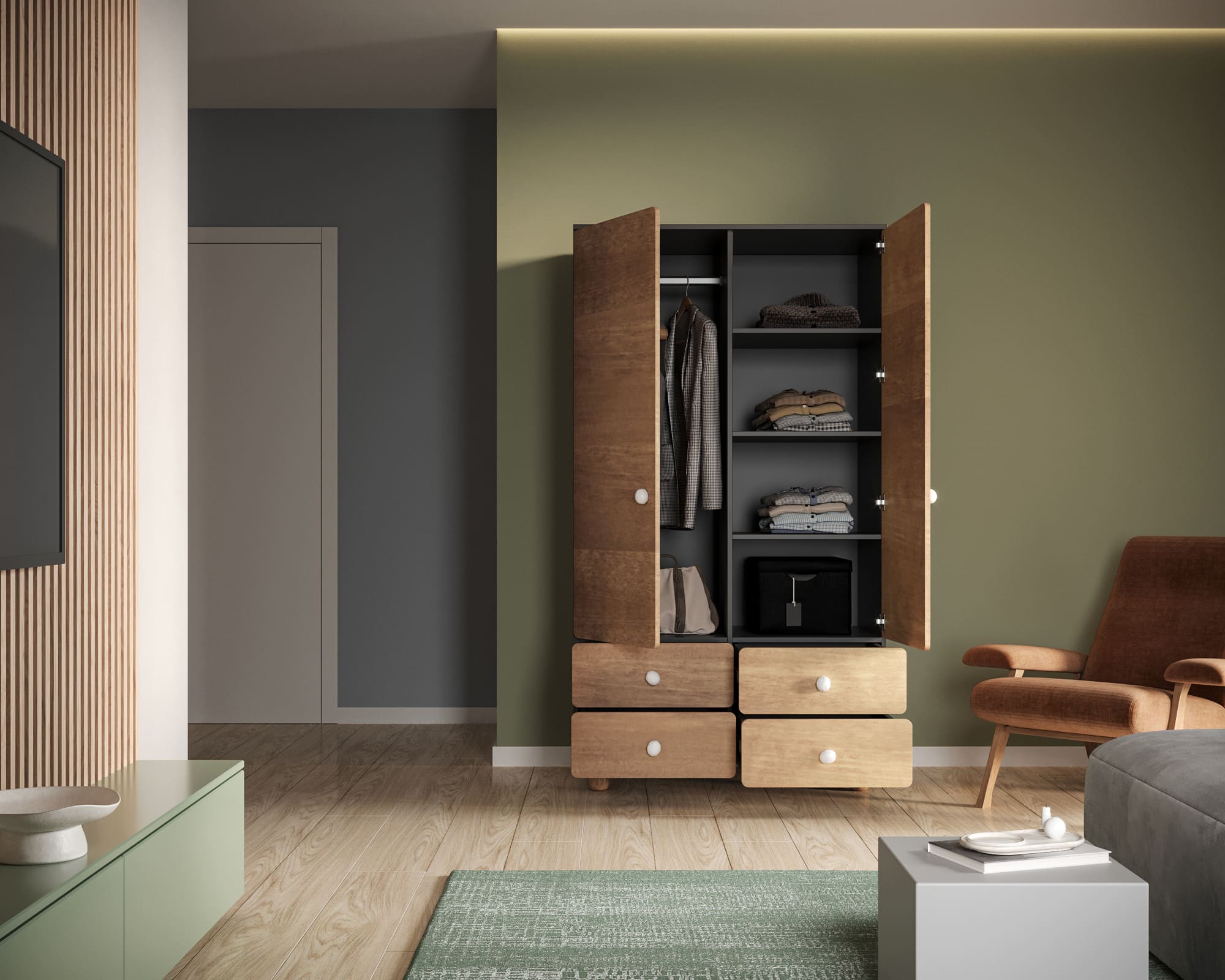 Шкаф двухдверный с ящиками Split