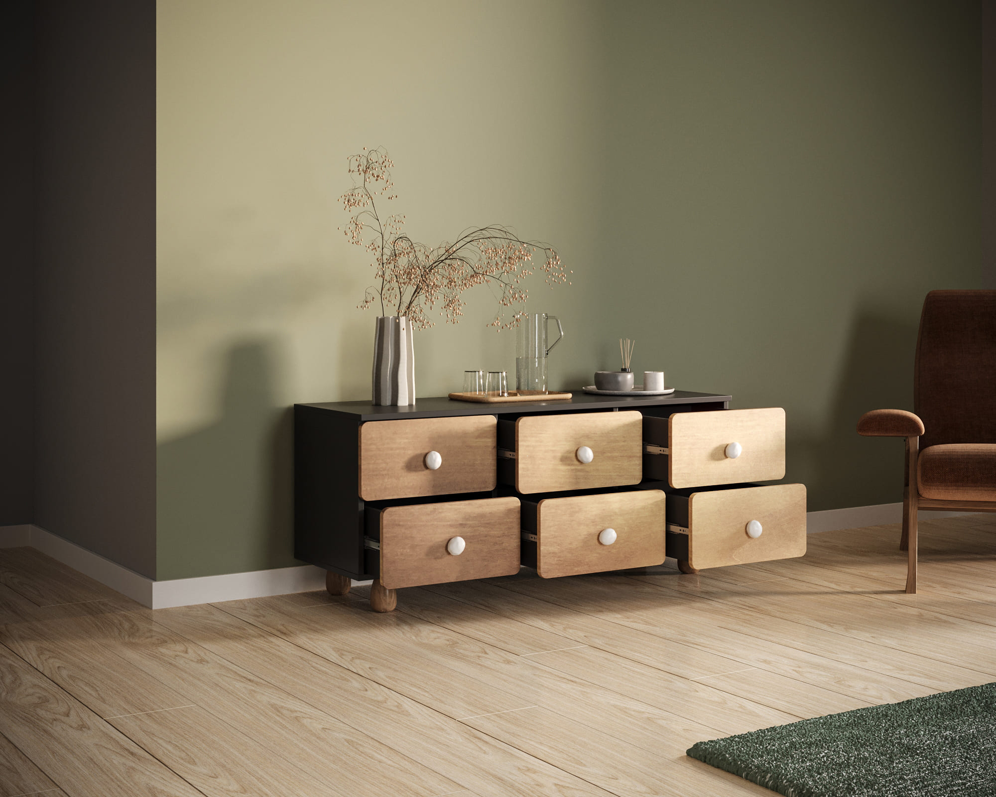 Тумба под ТВ Split с шестью ящиками