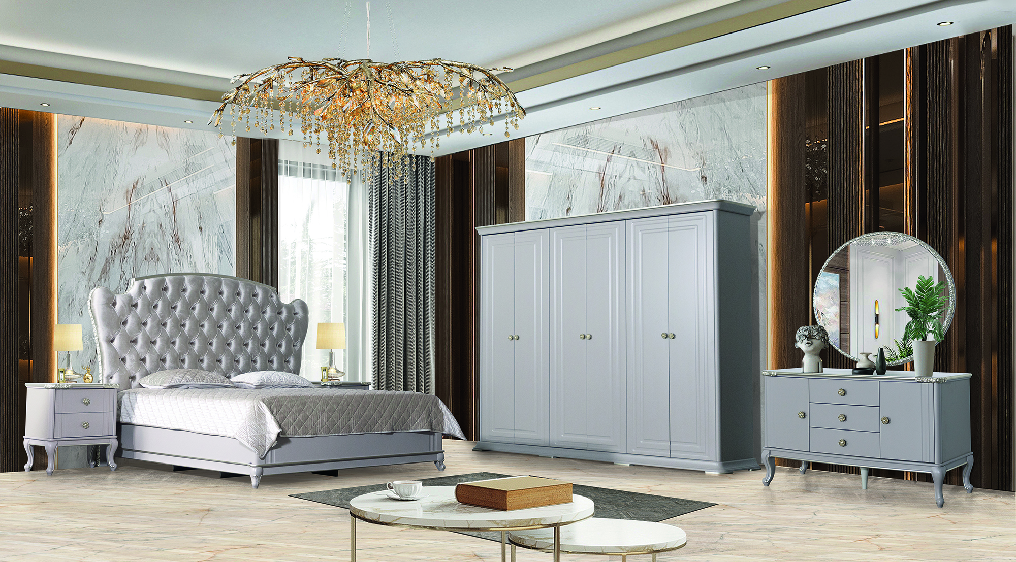 Кровать двуспальная "Мия" платина