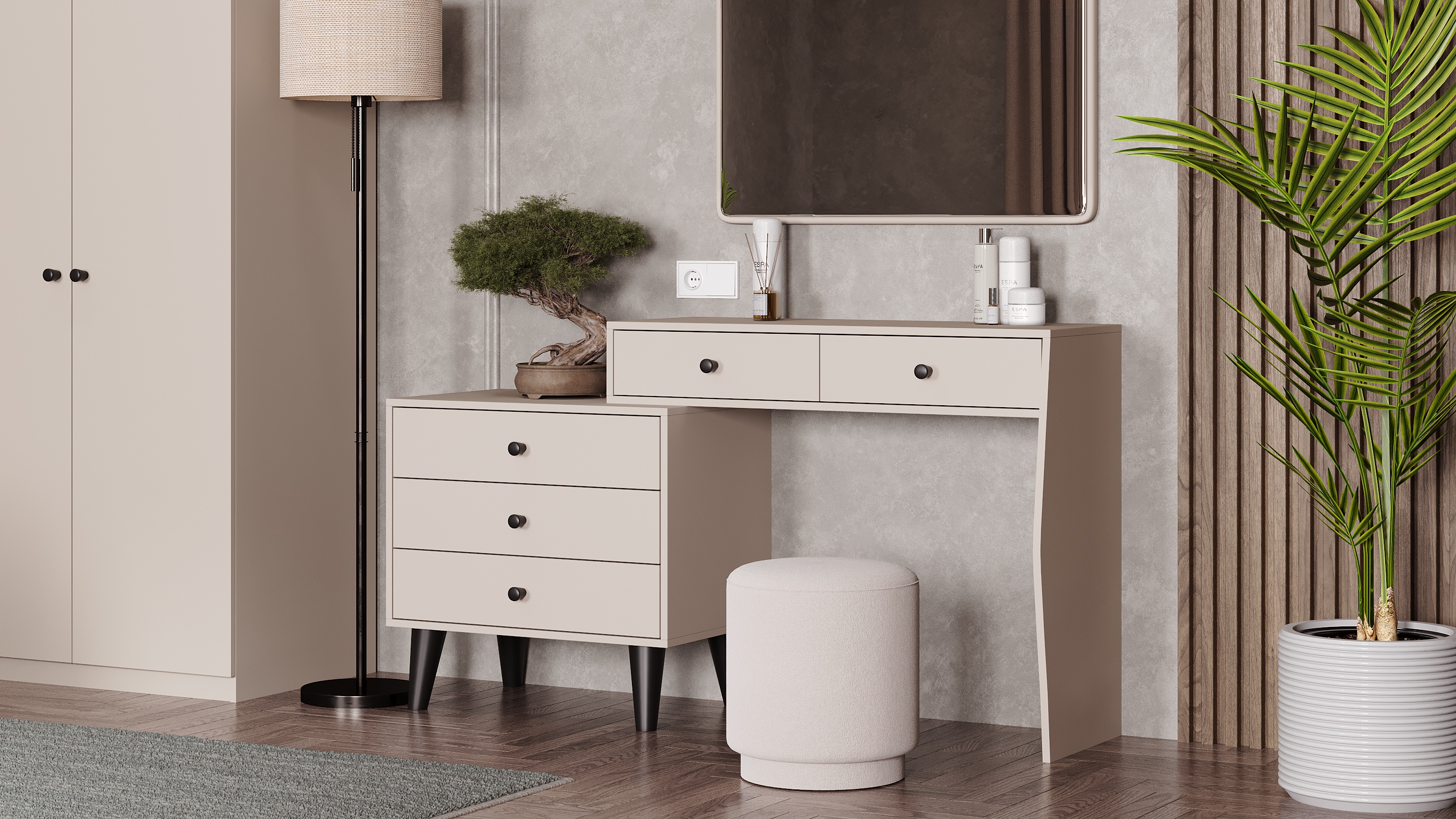• Туалетный столик с зеркалом и пуфом